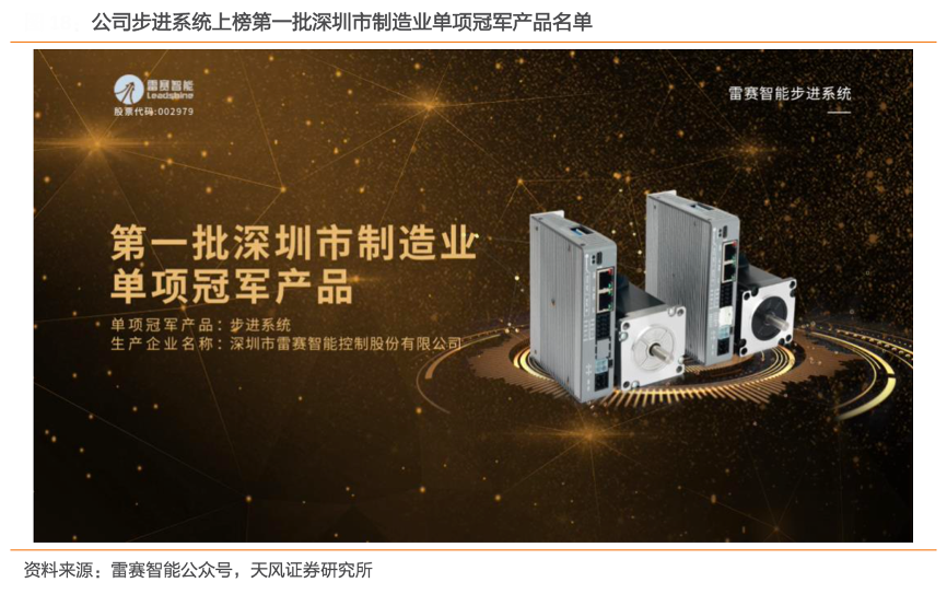 經(jīng)典案例:根據(jù)雷賽智能公眾號(hào)、天風(fēng)證券研究所等綜合資訊表明,目前我國(guó)步進(jìn)系統(tǒng)市場(chǎng)以內(nèi)資品牌為主,雷賽智能、深圳研控、鳴志電器等國(guó)產(chǎn)品牌已占據(jù)整個(gè)市場(chǎng)份額的90%以上,多年來(lái)公司產(chǎn)品以質(zhì)量高、性能強(qiáng)、品類全、規(guī)模大而享譽(yù)海內(nèi)外,在國(guó)內(nèi)市場(chǎng)占有率已連續(xù) 10 年以上穩(wěn)居第一。2023 年,公司步進(jìn)系統(tǒng)上榜第一批深圳市制造業(yè)單項(xiàng)冠軍產(chǎn)品名單。