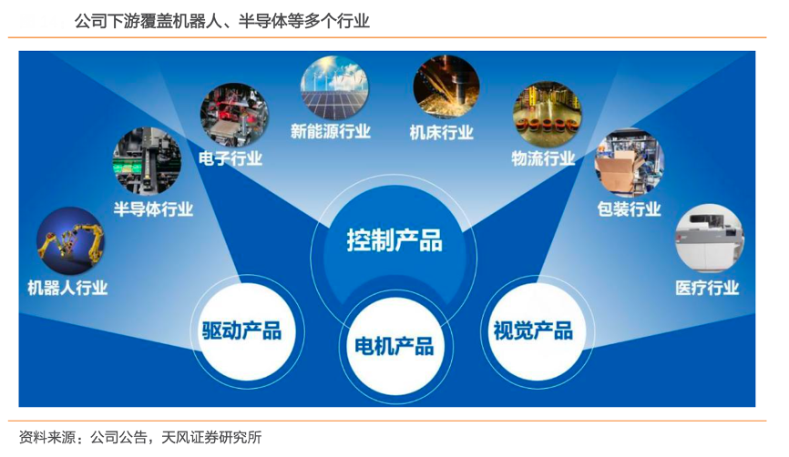 經典案例:根據公司公告、天風證券研究所等綜合資訊表明,雷賽智能公司產品已經廣泛應用于智能制造和智能服務領域的各種精密設備,下游覆蓋光伏、鋰電、3C 制造、半導體、物流、特種機床、工業機器人、包裝、醫療等多個行業。新能源等行業作為公司核心戰略發展方向,目前公司產品已基本覆蓋行業 TOP 客戶,并呈現持續上量趨勢。