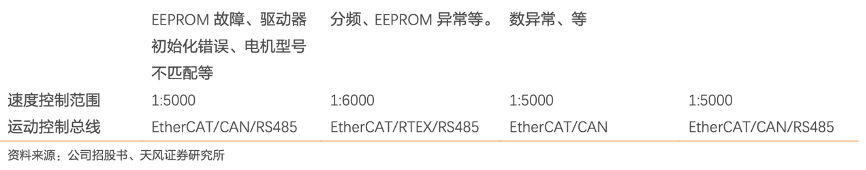 經典案例:根據公司招股書、天風證券研究所等綜合資訊表明,雷賽智能公司伺服系統類產品布局全面,包括交流伺服驅動器、交流伺服電機、低壓伺服驅動器、低壓伺服電機、一體式伺服電機等。公司伺服產品綜合性能指標位于國內前列,以 L6 系列產品為例,其在響應性、易用性、編碼器分辨率、實時總線方面達到了國內領先水平,而末端振動抑制算法在抑制頻率范圍、抑 制個數等指標上與國際先進水平相當。