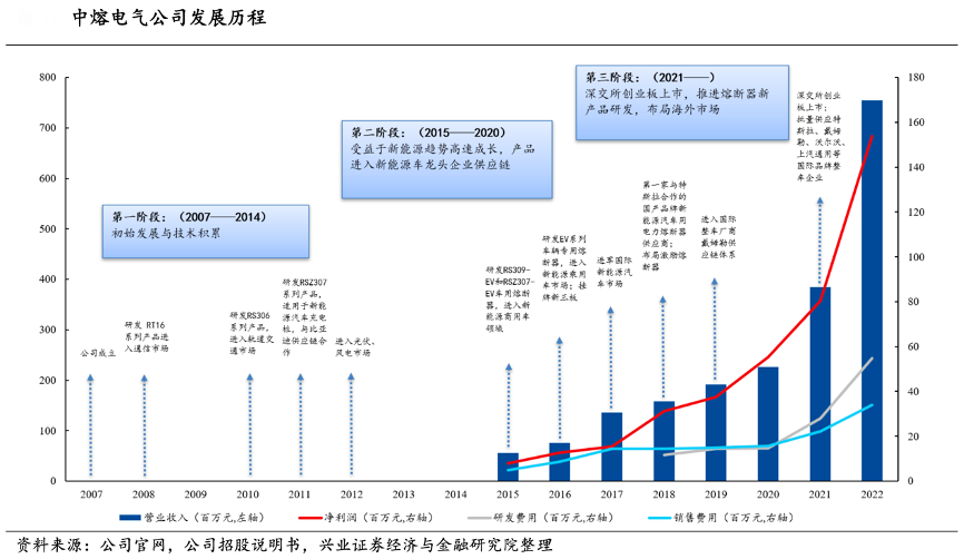 經典案例:根據公司官網、公司招股說明書、興業證券經濟與金融研究院等綜合資訊表明,中熔電氣系國產電力熔斷器龍頭企業。西安中熔電氣股份有限公司成立于 2007 年 4 月,于 2021 年在深交所創業板上市。主營業務為熔斷器及相關配件的研發、生產和銷售,主要產品為電力熔斷器、電子類熔斷器、激勵熔斷器及智能熔斷器,前主導產品為電力熔斷器。