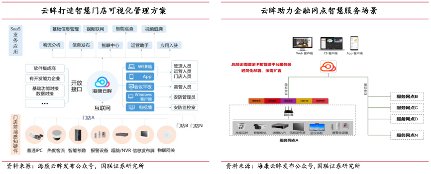 經(jīng)典案例:根據(jù)海康云眸發(fā)布公眾號、國聯(lián)證券研究所等綜合資訊表明,物理世界與數(shù)字世界的深度融合迎來發(fā)展機(jī)遇,智能物聯(lián)網(wǎng)(AIoT) 隨之應(yīng)運(yùn)而生,為傳統(tǒng)產(chǎn)業(yè)帶來了新的創(chuàng)新發(fā)展機(jī)遇。以海康威視為例,公司通過云眸企業(yè)級 SaaS 平臺(tái)沉淀標(biāo)準(zhǔn)化行業(yè)應(yīng)用,服務(wù)更多行業(yè)用戶,共同構(gòu)建了智能物聯(lián)產(chǎn)品和解決方案體系。