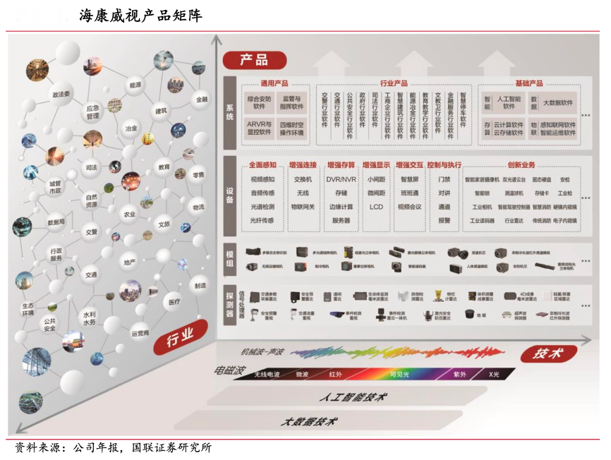 經(jīng)典案例:根據(jù)公司年報(bào)、國(guó)聯(lián)證券研究所等綜合資訊表明,海康威視憑借多維感知、AI、大數(shù)據(jù)等技術(shù)優(yōu)勢(shì),拓展了從探測(cè)器到系統(tǒng)解決方案的 30000+種硬件產(chǎn)品,覆蓋了 10 大行業(yè)、70多個(gè)子行業(yè)的 300 多個(gè)細(xì)分場(chǎng)景。同時(shí),公司以“基線”+“定制”的模式,不斷豐富產(chǎn)品矩陣,形成了技術(shù)創(chuàng)新驅(qū)動(dòng)的核心競(jìng)爭(zhēng)力。