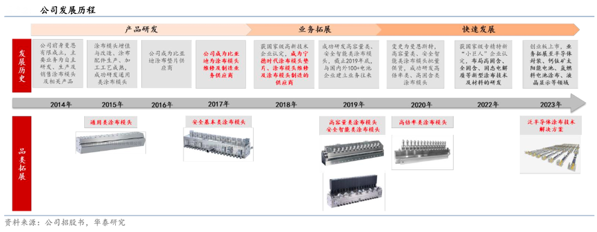經(jīng)典案例:根據(jù)公司招股書、華泰研究等綜合資訊表明,曼恩斯特公司深耕高精密狹縫式涂布模頭,實現(xiàn)核心產(chǎn)品的更新迭代,獲得下游電池客戶的認證,并拓展了涂布設(shè)備、涂布配件等業(yè)務(wù),從零部件供應(yīng)商轉(zhuǎn)型為涂布整體方案服務(wù)商,并實現(xiàn)了涂布工藝在泛半導體與燃料電池等領(lǐng)域的技術(shù)突破。