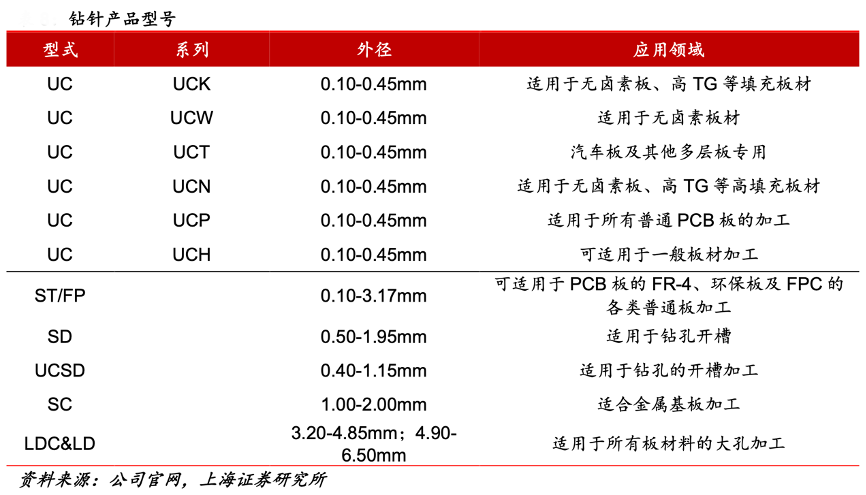 經(jīng)典案例:根據(jù)公司官網(wǎng)、上海證券研究所等綜合資訊表明,鼎泰高科公司擁有 PCB 刀具全系列研發(fā)設(shè)計(jì)和制造能力,目前鉆針產(chǎn)品直徑規(guī)格覆蓋 0.05-6.75mm,產(chǎn)品型號(hào)較為齊全,尺寸覆蓋面廣。目前公司能夠 實(shí)現(xiàn) 0.10mm 直徑微鉆的批量穩(wěn)定生產(chǎn),并針對(duì) 0.05-0.10mm 直徑的鉆針做好相關(guān)技術(shù)儲(chǔ)備和打樣需求。
