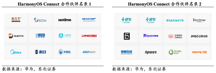 經典案例:根據華為、東北證券等綜合資訊表明,HarmonyOS 面向 C 端,華為提供生態合作伙伴計劃。合作伙伴設備接入鴻蒙智聯 生態后,可快速融入華為全場景智慧生活。其中的生態產品合作伙伴是基于 HarmonyOSConnect 技術完成智能硬件產品的開發、認證、量產和推廣的合作伙伴。