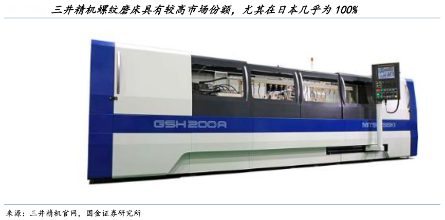 經典案例:根據三井精機官網、國金證券研究所等綜合資訊表明,以三井精機為例,其 2022 年營業收入為 201 億日元,企業規模小于德瑪吉森精機等龍頭機床廠,但高精度機床具有較高知名度,尤其是螺紋磨床市場份額較高,在日本份額幾乎為 100%。
