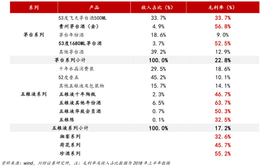 白酒行業經過多年發展,茅臺等品牌在消費者心目中擁有較強的品牌影響力,消費者時常在終端進行點名購買,53度飛天茅臺、國窯1573等明星產品基本已經成為白酒行業的“硬通貨”,明星產品樹立形象、適度的控價銷售可以引流,定制產品也可以獲得快速增長,多產品組合可以推動企業的快速發展。