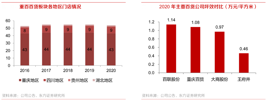經典案例:根據公司公告、東方證券研究所等綜合資訊表明,近年來,重慶百貨百貨事業部注重提升“存量門店”經營效率,推動門店進行特色化調改,或轉型購物中心,加強商業資源的對接、分級管理。其涉獵線上零售業務較早,2014年相繼上線運營世紀購、世紀秀兩大電子商務平臺。近年來重慶百貨公司加強各銷售環節數字化建設,技術賦能零售,2020年其自建線上銷售平臺 GMV 達1342.5萬元,總訪問量為135.47萬人次。