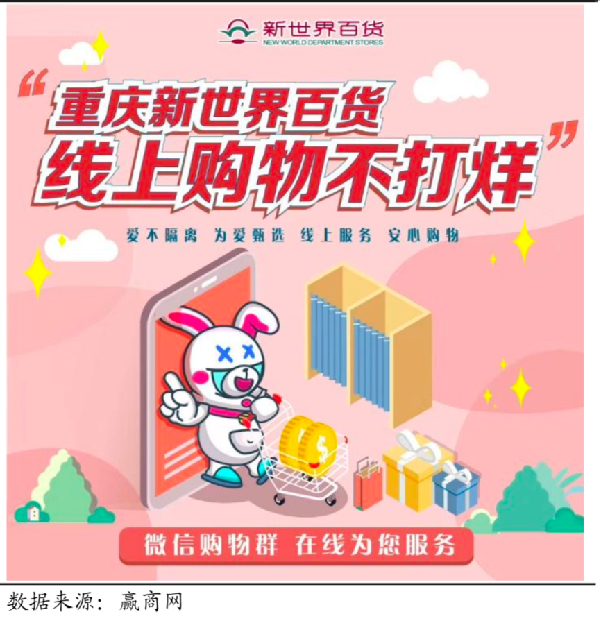 經典案例:根據贏商網、國泰君安證券研究等綜合資訊表明,重慶百貨通過多樣化社群營銷方式,不間斷注入社群活力、推動沉淀粉絲進 行轉化、深化社群黏度,如服飾類社群運營以閃購專場、品牌日方式進行主題營銷,提前預告節目單、熱銷商品劇透等具有吸引力的社群運營方式,每天分時段分場次進行社群活動發布。