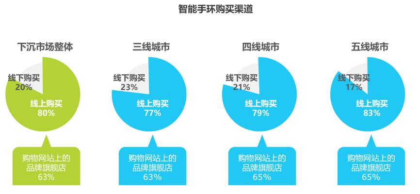 經典案例:根據《20210513-艾瑞咨詢-科技行業“下沉”專題系列報告》等綜合資訊表明,隨著城市級別降低,線上購買占比逐漸增加。五線城市超過八成消費者在線上購買智能手環,其中六成消費者在品牌旗艦店購買。品牌在旗艦店的選品、精準營銷、大促活動等方面極為發展潛力。