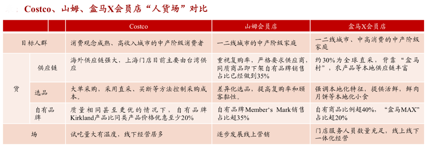 經典案例:根據招商證券等綜合資訊表明,Costco注重線下經營,大方試吃,線下消費體驗良好;山姆逐步發力線上營銷;盒馬X會員店服務人員較多,消費者體驗感更強,同步發展線上銷售一體化運營,提高商品運營效率。