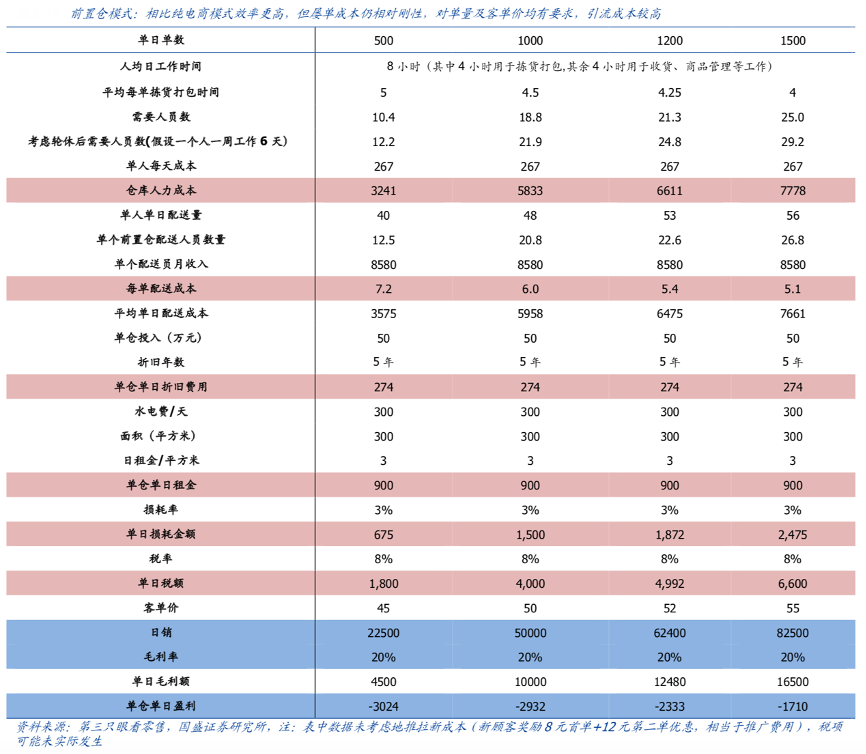 經典案例:根據第三只眼看零售、國盛證券研究所等綜合資訊表明,前置倉,一般設在社區周邊 3 公里以內,消費者下單后由前置倉送貨上門,一定程度上解決了配送效率及配送成本問題。以叮咚買菜為例,其成立于 2017 年 5 月,自建社區前置倉,主打“0 起送費,0 配送費,最快 29 分鐘送達”的家庭 買菜業務;截至 2019 年底,據AI 財經社,叮咚買菜共 550 個前置倉,服務上海、蘇州、 杭州大部分社區,其中上海有 250 個前置倉。