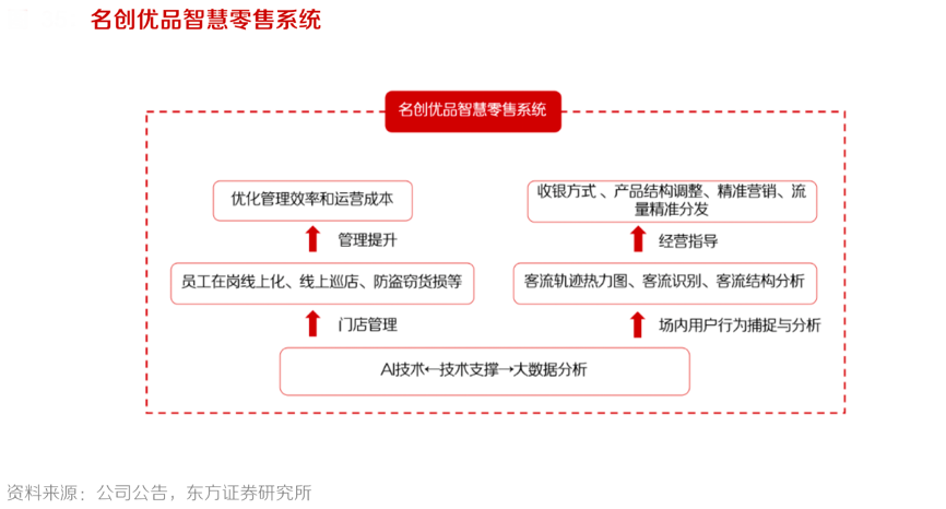 經(jīng)典案例:根據(jù)公司公告、東方證券研究所等綜合資訊表明,名創(chuàng)優(yōu)品各個門店基本覆蓋智慧門店系統(tǒng),基于對消費(fèi)者店內(nèi)消費(fèi)行為模式以及產(chǎn)品銷售趨勢的分析,決定各門店的產(chǎn)品組合,完成門店之間的合理分配,實(shí)現(xiàn)庫存風(fēng)險最小化。根據(jù) FY2020 數(shù)據(jù),國內(nèi)市場方面進(jìn)店客流量超過 4.16 億人次,約 30%消費(fèi)者進(jìn)行購買行為。在用戶畫像方面,80%到店消費(fèi)者年齡低于40歲,60%到店消費(fèi)者年齡低于 30 歲,20-30 歲人群消費(fèi)能力最強(qiáng),符合公司的核心客群定位。