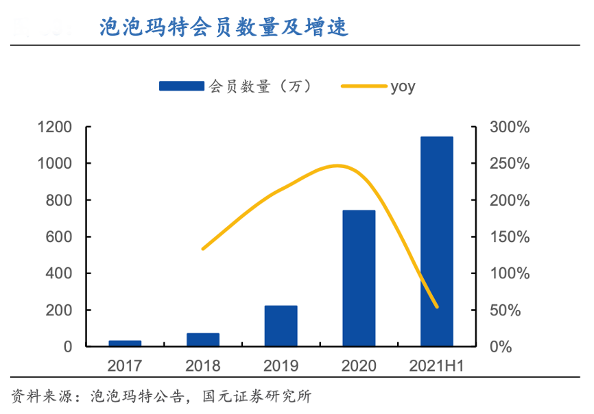 經典案例:根據泡泡瑪特公告、國元證券研究所等綜合資訊表明,2021H1泡泡瑪特公司會員數量達 1141.5 萬人,同比增長54%,會員復購率達49%,會員銷售額貢獻達91.8%。