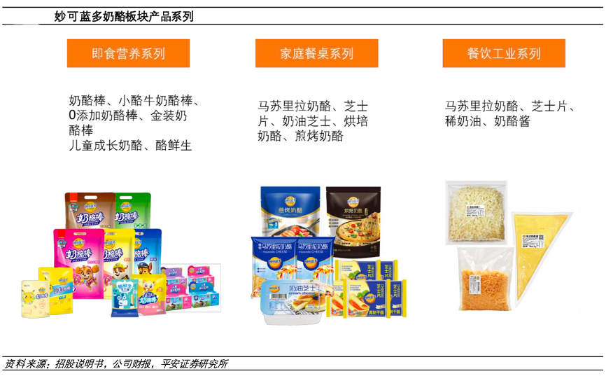 經(jīng)典案例:根據(jù)wind、平安證券研究所等綜合資訊表明,妙可藍(lán)多公司的馬蘇里拉奶酪主要分為家庭餐桌系列和餐飲工業(yè)系列,50g小包裝的馬蘇里拉芝士面向家庭端,3.6kg大包裝的馬蘇里拉芝士面向終端連鎖餐飲。2021 年家庭餐桌系列營收占比為 10.54%,餐飲工業(yè)系列營收占比為 14.09%。