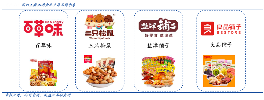 經典案例:根據公司公告、國盛證券研究所等綜合資訊表明,在品牌形象上,百草味品牌來源于“神農嘗百草”以及“三味書屋”,文化歷史感強,其在品牌宣傳時常與“中國味”相關聯。三只松鼠的品牌較為靈動,容易形成直觀印象,消費者可以通過松鼠與堅果進行聯想記憶,從而形成較強的堅果心理占位,但是同時可能會削弱消費者對于其他產品的想象空間。