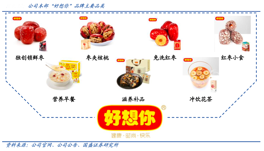 經典案例:根據公司官網、公司公告、國盛證券研究所等綜合資訊表明,好想你公司本部擁有豐富的棗類產品經營經驗,已經形成以鎖鮮棗、棗夾核桃、免洗紅棗以及紅棗小食為主的多品類產品矩陣,2018年公司紅棗類產品營收達到 8.68 億元。目前其紅棗類產品主力單品以清菲菲、甜小香、紅小脆、28 度鎖鮮棗為主。