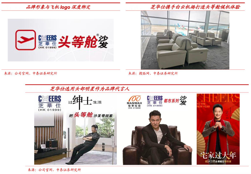經(jīng)典案例:根據(jù)公司官網(wǎng)、搜狐網(wǎng)、中泰證券研究所等綜合資訊表明,敏華公司深度綁定“飛機(jī)頭等艙”進(jìn)行品牌概念營(yíng)銷(xiāo),提出“把頭等 艙帶回家”的口號(hào),并通過(guò)類(lèi)似飛機(jī)頭等艙的展示環(huán)境來(lái)進(jìn)行產(chǎn)品展示體驗(yàn);在品牌 logo 上采用標(biāo)志性的“飛機(jī)”圖案和“頭等艙”文字,并在機(jī)場(chǎng)、高鐵等高端商務(wù)場(chǎng)所開(kāi)展?fàn)I銷(xiāo)活動(dòng),如與白云機(jī)場(chǎng)合作打造頭等艙候機(jī)廳,布局機(jī)場(chǎng)安檢框廣告等,形成商務(wù)、高端的品牌形象。