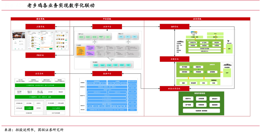經典案例:根據招股說明書 、國聯(lián)證券研究所等綜合資訊表明,鄉(xiāng)村基、老鄉(xiāng)雞通過實施 SAP 系統(tǒng),將門店端需求傳導至加工生產端,實現供應鏈系統(tǒng)協(xié)作;老鄉(xiāng)雞還通過實施金蝶系統(tǒng),將中央廚房需求傳導至養(yǎng)殖端,實現養(yǎng)殖公司標準化、精細化養(yǎng)殖。