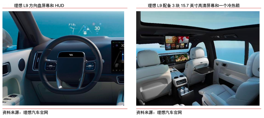 經典案例:根據理想汽車官網、中信證券研究部等綜合資訊表明,基于理想汽車官微,理想L9的創新多多,如超強的計算平臺,智能座艙標配兩顆高通驍龍 8155 芯片,配合 24GB 內存和 256GB 高速存儲組成的計算平臺,為 AI、軟件和娛樂提供強大的計算能力。
