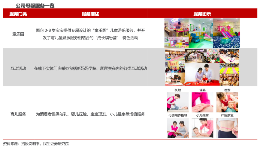 經(jīng)典案例:根據(jù)招股說明書、民生證券研究院等綜合資訊表明,孩子王公司在母嬰商品的基礎(chǔ)上提供母嬰服務(wù),推出童樂園、互 動活動、育兒服務(wù)等各類母嬰童服務(wù)及黑金會員服務(wù),同時還與供應(yīng)商合作,展開 會員開發(fā)、互動活動冠名、商品線上線下推廣宣傳等活動,打造出差異化競爭力,2021年公司母嬰服務(wù)營收為2.58億元。