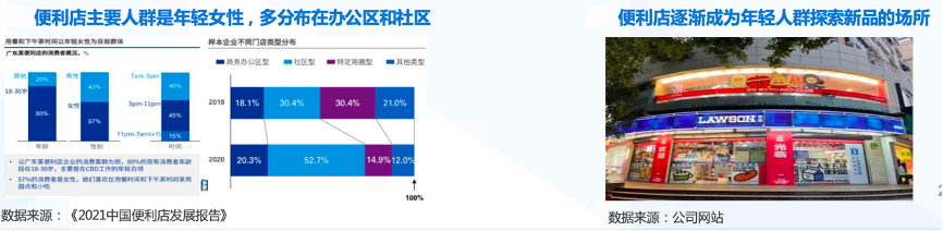 同時,便利店的主要消費人群是30歲以下的年輕女性。銷售功能從提供基礎生活用品的補給站,逐漸成為年輕人群探索新品、發現寶 藏品牌的場所。一般的便利店大約呈現2000-3000個SKU。