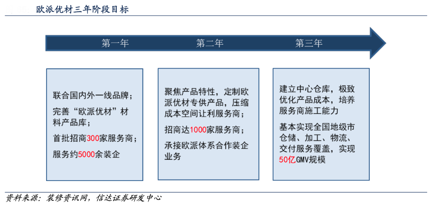 經典案例:根據裝修資訊網、信達證券研發中心等綜合資訊表明,為解決舊模式下供貨時效性差,物流配送不穩定、服務類型單一等問題,歐派優材業務不斷優化迭代,2022年從原有的優質裝材直供合作裝企模式,逐步轉化為尋求優質服務商為裝企提供倉儲、選品、配送、服務等一站式優質服務的全新模式。2022年歐派優材將圍繞服務商業態變化,開啟合作的全新模式,通過建立差異化產品優勢,讓更多有實力的服務商加入歐派合作品類平臺。