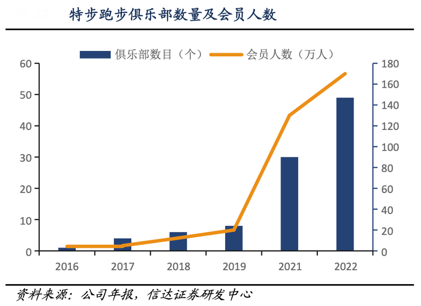 經典案例:根據公司年報、信達證券研發中心等綜合資訊表明,特步公司開設特步跑步俱樂部,為跑者提供一站式專業跑步服務,包括跑步咨詢、跑團服務、手機充電、行李寄存及淋浴設施,通過線下面對面互動,使特步品牌與粉絲的聯系更緊密,粉絲對品牌的忠誠度在線 下的社交中變得更為牢固。部分特步跑步俱樂部設立于跑步熱門地點,包括北京奧林匹克 森林公園、上海世紀公園、南京玄武湖等,成為公司的戰略優勢資源。