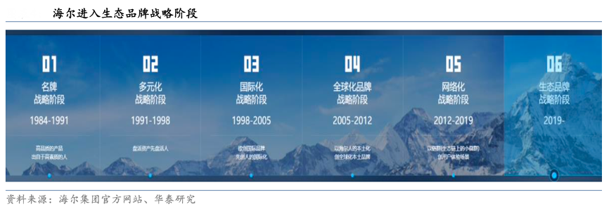 經典案例:根據2021年海爾智家投資者交流大會、華泰研究等綜合資訊表明,回顧歷史,從 1985 年“砸冰箱”到2000 年提出自主品牌出海、2005-2012 年不斷收購海 外家電資產,再到 2016-2019 探索“創客小微”管理模式,持續推進品牌升級及產品拓展。