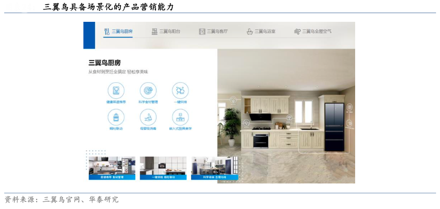 經典案例:根據三翼鳥官網、華泰研究等綜合資訊表明,2020年海爾智家正式推出“三翼鳥”,“三翼鳥”是海爾智家旗下場景品牌,從賣產品到賣場景的新賽道,提供陽臺、廚房、浴室、全屋空氣、全屋用水、視聽等智慧家庭全場景解決方案。同時依托海爾智家體驗云平臺,連接用戶、企業、生態方,創造因需而變的個性化方案。
