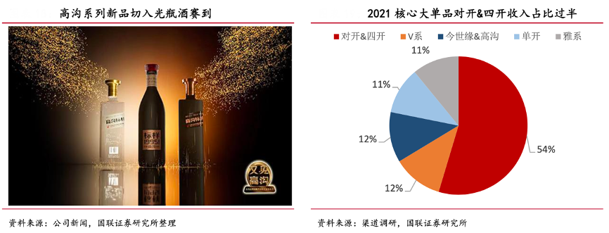 經(jīng)典案例:根據(jù)公司新聞、國(guó)聯(lián)證券研究所、渠道調(diào)研等綜合資訊表明,2022 年 8 月 27 日,今世緣舉辦“又見高溝—高溝品牌戰(zhàn)略暨新品上市發(fā)布會(huì)”,正式提出“高溝品牌復(fù)興戰(zhàn)”。產(chǎn)品設(shè)計(jì)上, 新高溝系列以標(biāo)樣為標(biāo)識(shí),目前已推出高溝標(biāo)樣 1995、高溝標(biāo)樣黑標(biāo)&白標(biāo),通過推出光瓶酒產(chǎn)品,搶占高線光瓶酒新賽道。同時(shí)高溝作為老名酒,聚焦品類創(chuàng)新,從中高線光瓶酒切入,以“黃淮名酒帶高端裝瓶酒典范”為標(biāo)量,進(jìn)行產(chǎn)品塑造和復(fù)興。