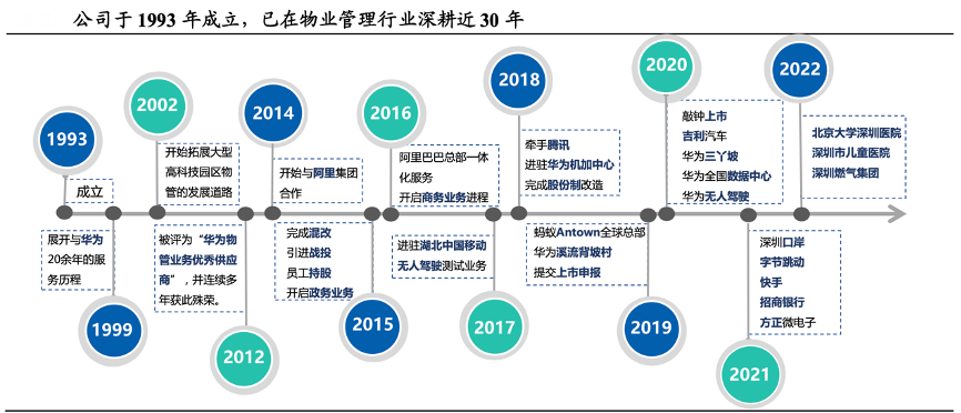 經典案例:根據國泰君安證券研究等綜合資訊表明,特發服務公司1999 年至今已承接華為深圳總部以及駐外研究所 IFM 全管業務,是華為后勤服務份額最大的 IFM 服務供應商。2014 年至今,特發服務已介入阿里巴巴集團總部、螞蟻集團、阿里云、菜鳥等多個阿里生態體系,已成為阿里集團份額最大的 IFM 服務供應商。