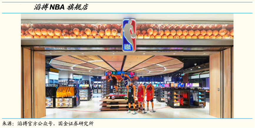 經(jīng)典案例:根據(jù)滔搏官方公眾號(hào)、國(guó)金證券研究所等綜合資訊表明,2019 年公司成為 NBA 中國(guó)旗艦店獨(dú)家運(yùn)營(yíng)合作伙伴,并陸續(xù)在北京、廣州、天津開(kāi)設(shè)旗艦店,其中 2021 年 12 月開(kāi)業(yè)的天津旗艦店面積達(dá) 1500 平米,門(mén)店有特別為中國(guó)球迷打造的貨品組合,多款只在球隊(duì)主場(chǎng)球迷商店才能買(mǎi)到的特許經(jīng)營(yíng)產(chǎn)品,并精心還原籃球賽場(chǎng)、球衣更衣室等場(chǎng)景,為中國(guó)球迷營(yíng)造濃郁的 NBA 文化氛圍。