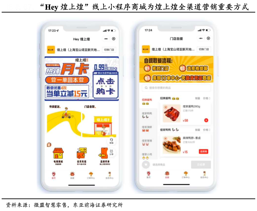 經(jīng)典案例:根據(jù)微盟智慧零售、東亞前海證券研究所等綜合資訊表明,煌上煌轉(zhuǎn)戰(zhàn)線上及互聯(lián)網(wǎng)平臺,積極布局新零售,進(jìn)行全渠道營銷。其搭建“Hey 煌上煌”線上小程序商城,引流線下門店并添加顧客至微信群,后續(xù)通過優(yōu)惠券推送提高復(fù)購率,2022 年 7 月,小程序商城月度 GMV 突 破 1000 萬元;同時重構(gòu)內(nèi)容營銷矩陣,聚焦“兩微一抖”等平臺,實現(xiàn)加盟商門店一店一播,同時通過微信公眾號、抖音等渠道進(jìn)行宣傳及福利種草,進(jìn)一步實現(xiàn)消費轉(zhuǎn)化。