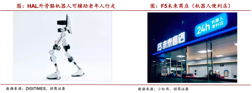 經典案例:根據DIGITIMES、小紅書、招商證券等綜合資訊表明,無人超市、無人便利店的產生提高了實體零售業智能化數字化水平,第一家無人便利店F5未來商店于2014年落地,截至2021年已開設60多家門店,利用機器人自動化結合算法為顧客帶來高效便利的體驗,同時有助于公司降低人力成本開支,將更多的資金投入至擴大店面的覆蓋率上,使得大多數老人的居住地步行范圍內均配備便利店及生鮮超市。