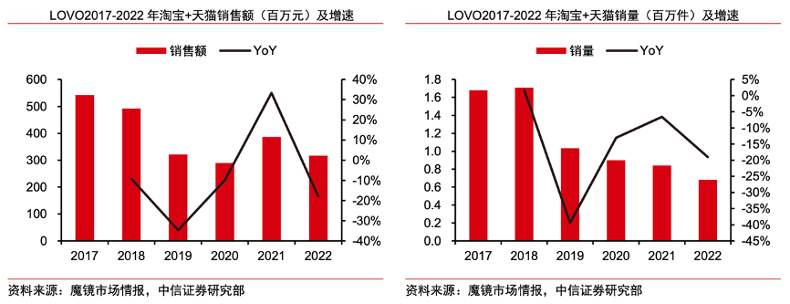 經典案例:根據魔鏡市場情報、中信證券研究部等綜合資訊表明,LOVO 樂蝸目標客戶群為蝸居一族、住宿學生等年輕群體,2020 年完成品牌升級,啟用全新視覺設計與 廣告語,產品在高密度全棉基礎上,增加卡通人物、多彩印花等元素,突出年輕、時尚的品牌定位。價格方面,根據魔鏡市場情報,LOVO 產品均價為 400 元左右,四件套價格最 低可為 200 元左右,為青年租房、宿舍改造等場景提供高性價比的選擇。