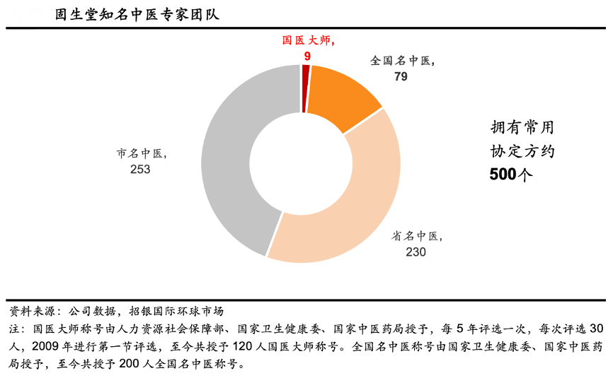 經(jīng)典案例:根據(jù)公司數(shù)據(jù)、招銀國際環(huán)球市場等綜合資訊表明,醫(yī)療機構(gòu)的中藥制劑大多來自本院名老中醫(yī)的協(xié)定方,是名老中醫(yī)學(xué)術(shù)思想和多年診療經(jīng)驗的智慧結(jié)晶。截至2023 年 6 月底,固生堂合作的名中醫(yī)達到 571 位,其中包括 9 位國醫(yī)大師和 79 位全國名中醫(yī)。