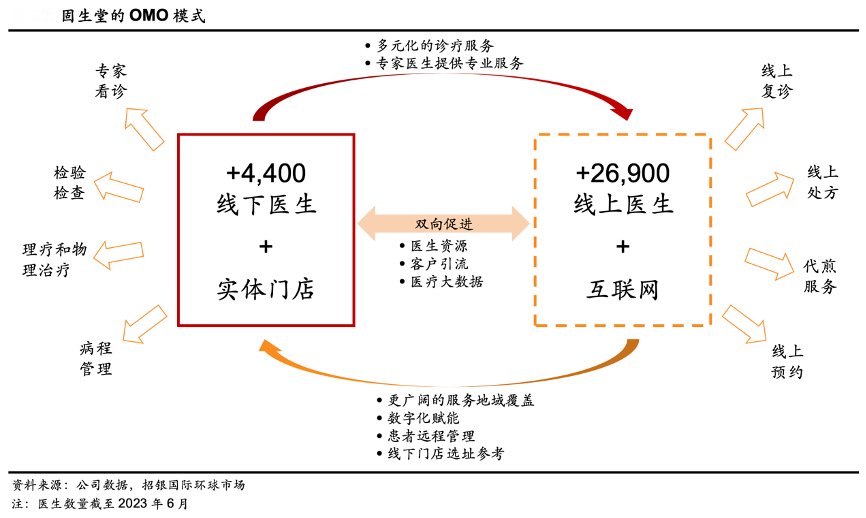 經(jīng)典案例:根據(jù)公司數(shù)據(jù)、招銀國際環(huán)球市場等綜合資訊表明,固生堂自 2018 年起開始提供互聯(lián)網(wǎng)醫(yī)療服務(wù),公司通過其微信官方公眾號為客戶提供線下門診預(yù)約、在線復(fù)診、診斷以及處方等服務(wù)。固生堂于 2021 年 2 月在廣州設(shè)立固生堂互聯(lián)網(wǎng)醫(yī)院管理有限公司,用于管理其收購的白露和萬家互聯(lián)網(wǎng)醫(yī)院平臺。