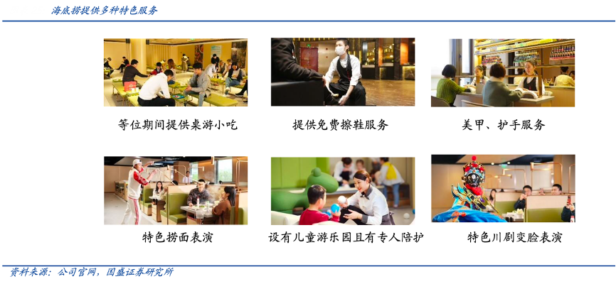 經(jīng)典案例:根據(jù)公司官網(wǎng)、國盛證券研究所等綜合資訊表明,在初期火鍋提供的產(chǎn)品、口味較為同致化的前提下,怎樣實(shí)現(xiàn)差異化,打造獨(dú)特的品牌形象是每個(gè)企業(yè)面臨的問題,海底撈給出的回答是——極致服務(wù)。好員工成就好服務(wù),員工自發(fā)性提供的服務(wù)更有效。