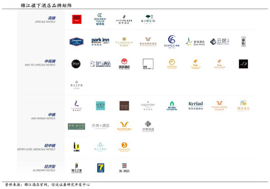 經典案例:根據環(huán)球旅訊、錦江酒店官網、錦江酒店公司公告、信達證券研究開發(fā)中心等綜合資訊表明,錦江通過多次收購,吸納了眾多酒店品牌,從經濟型到高端各細分檔次均有多個知名品牌,在不同的城市層級中形成了有梯度的價格體系。