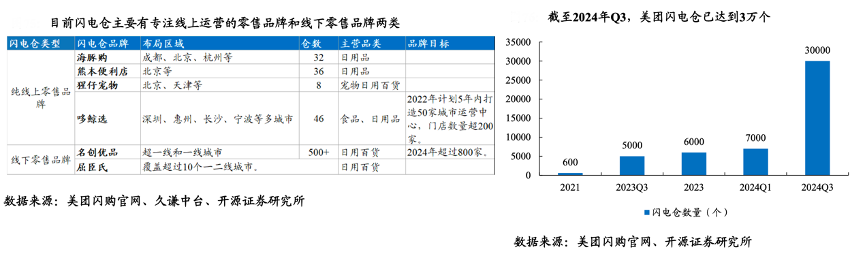 經典案例:根據美團閃購官網、久謙中臺、開源證券研究所等綜合資訊表明,相比傳統零售商線上化,閃電倉經營時長大大拓展,節省房租裝修和人力等運營成本,投入小。目前已誕生海豚購、熊本便利店、猩仔寵物等專注線上運營的實體零售商。如名創優品在美團開設的閃電倉數量已達到500家,并計劃在年內超過800家,成為業內開設直營閃電倉數量最多 的零售品牌;屈臣氏在美團開設的閃電倉覆蓋了超過十個一二線城市。