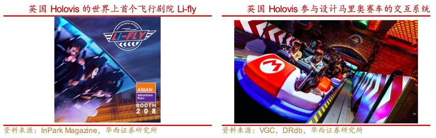 經(jīng)典案例:根據(jù)InPark Magazine、VGC、DRdb、華西證券研究所等綜合資訊表明,英國(guó) Holovis 是一家主要為主題樂(lè)園等場(chǎng)景提供游樂(lè)設(shè)施的 VR 和 AR 解決方案的科技公司。其在全球范圍內(nèi)開(kāi)展業(yè)務(wù),在英國(guó)、美國(guó)、中國(guó)和中東均設(shè)有辦事處。由于公司在 XR 領(lǐng)域擁有極高的專業(yè)實(shí)力,公司憑借樂(lè)高工廠探險(xiǎn)出色的設(shè)計(jì)項(xiàng)目實(shí) 踐獲得了 2021 年的 IAAPA 銅環(huán)獎(jiǎng),并通過(guò)超級(jí)任天堂世界和馬里奧賽車項(xiàng)目、阿布 扎比亞斯島分別于 2021 年和 2023 年獲得 THEA 獎(jiǎng)項(xiàng),優(yōu)勢(shì)顯著。