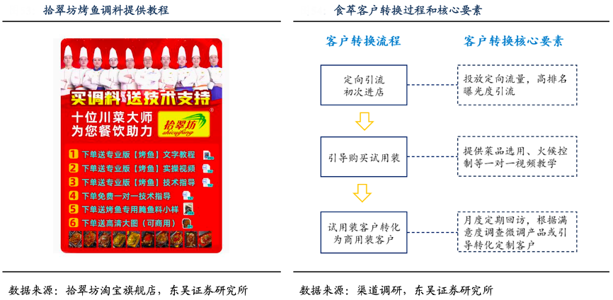 經(jīng)典案例:根據(jù)拾翠坊淘寶旗艦店、渠道調(diào)研、東吳證券研究所等綜合資訊表明,經(jīng)過多年探索,食萃已經(jīng)形成了較為完善的客戶拉新轉(zhuǎn)換機制,并將老客戶按照購買量分為五個等級,有針對性地進行維護留存。由于食萃主要為非專業(yè)廚師提供標(biāo)準(zhǔn)化產(chǎn)品,因此在客戶留存中食萃提供一對一服務(wù),包括調(diào)料使用方法、菜品選用、火候調(diào)整等教程,通過貼身服務(wù)增強客戶粘性,提高客戶轉(zhuǎn)化率。