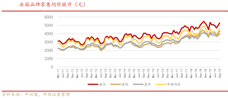 “十二大關(guān)鍵行動(dòng)”之三——“刷新消費(fèi)理念”:挖掘次高端冰箱消費(fèi),刷新“高性價(jià)比”消費(fèi)理念,聚焦拓展“高性價(jià)比人群”。據(jù)市場(chǎng)公開(kāi)資訊表明,2019年單價(jià)超過(guò) 1 萬(wàn)元的冰箱銷(xiāo)量同比上升 10.8%,單價(jià)超 過(guò) 6 千元的洗衣機(jī)銷(xiāo)量同比增速接近 40%,遠(yuǎn)高于全價(jià)格段 冰洗產(chǎn)品 0.7%的年度增速。