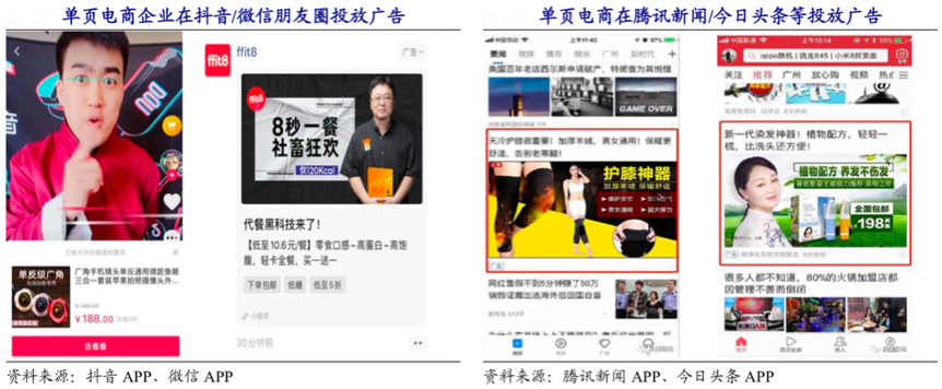 經典案例:根據抖音APP、微信APP、騰訊新聞APP、今日頭條APP等綜合資訊表明,單頁電商依托于大流量平臺投放產品單頁廣告,也獲得了針對目標人群的宣傳曝光機會。 如巨量魯班擁有西瓜視頻、火山小視頻、今日頭條和抖音四大平臺的優質流量,深耕下沉市場,精準定位熱衷“發現式購物”(相對于搜索式購物)的目標消費人群,值得下沉市場品牌策劃營銷運營時重點使用。