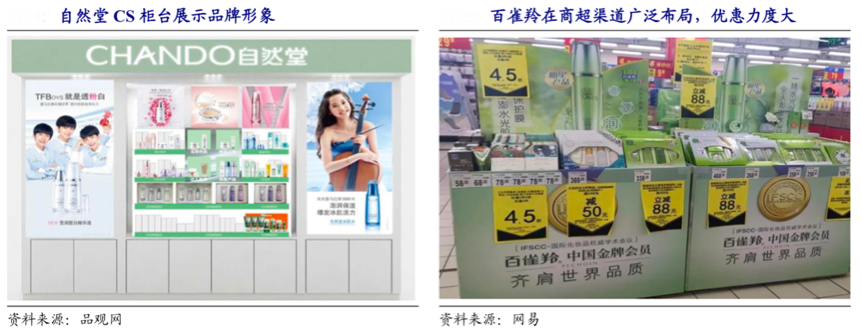 經典案例:根據品觀網、網易等綜合資訊表明,線下分銷渠道在低線城市中依然占有重要地位,美妝行業CS 渠道以丸美、珀萊雅和自然堂為代表,KA 渠 道以一葉子、百雀羚為代表。同時從增量消費人群來看,低線城市增速更快、 潛力更大,“小鎮青年”是重要的增量群體(2019年線上美妝消費增速達到38%)。