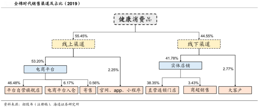 經(jīng)典案例:根據(jù)招股書、海通證券研究所等綜合資訊表明,全棉時代已完成主要包括天貓、京東在內的第三方電商平臺布局,并重點打造全棉時代官網(wǎng)、APP 和小程序等自營線上渠道,深度覆蓋線上消費者。同時線下已開設 250 家自營門店,核心產(chǎn)品進駐華潤萬家、永輝超市等主流商超。“產(chǎn)業(yè)品牌的全場景體驗”日臻豐富。