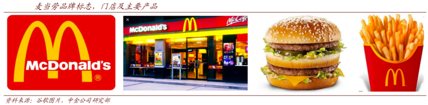 經(jīng)典案例:根據(jù)谷歌圖片、中金公司研究部等綜合資訊表明,麥當(dāng)勞已經(jīng)成為全球最大的餐飲連鎖公司,主打漢堡和薯?xiàng)l等美式快餐,其于 1961 年以 270 萬美元收購麥當(dāng)勞兄弟餐廳,其品牌標(biāo)志、門店及主要產(chǎn)品已經(jīng)成為“美國文化”的一部分。