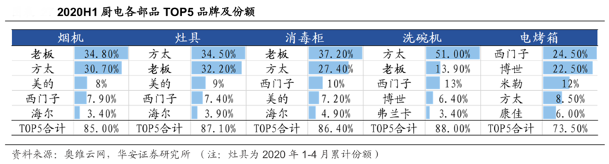 經典案例:根據奧維云網、華安證券研究所等綜合資訊表明,廚電各部品工程渠道品牌集中度遠高于零售渠道,且市占率較高的都是老板、方太、西門子等定位高端的品牌,越高的“品牌力”越能掌握商業合作的主動權。