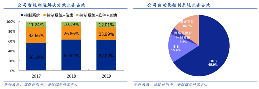 經典案例:根據招股說明書、安信證券研究中心等綜合資訊表明,中控技術公司自動化控制系統產品中SIS系統主要是保障工廠安全運行,在工業生產期間提供對設備、人身、環境的安全保護,避免惡性事故發生,同時自動化控制系統是智能制造解決方案的主要收入貢獻來源,2019年,智能制造解決方案中 62%的 收入來源于控制系統,其中 DCS 系統占控制系統收入的 66%。